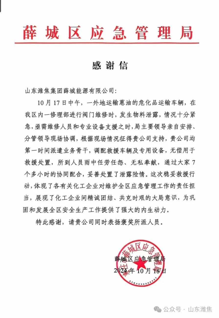 10月17日中午,一外地運(yùn)輸蒽油的?;愤\(yùn)輸車輛,在薛城區(qū)一車輛修理部進(jìn)行閥門維修時(shí),突發(fā)?;肺锪闲孤┦鹿?,情況十分緊急,薛城能源公司接訊后,派遣業(yè)務(wù)骨干,調(diào)配救援車輛及專用設(shè)備,無(wú)償用于救援處置。參加救援人員冒雨操作,任勞任怨、無(wú)私奉獻(xiàn),經(jīng)過7個(gè)多小時(shí)的協(xié)同配合、緊急救援,?;沸孤╇U(xiǎn)情成功妥善處置。